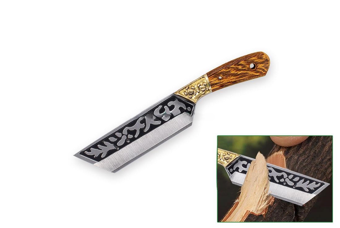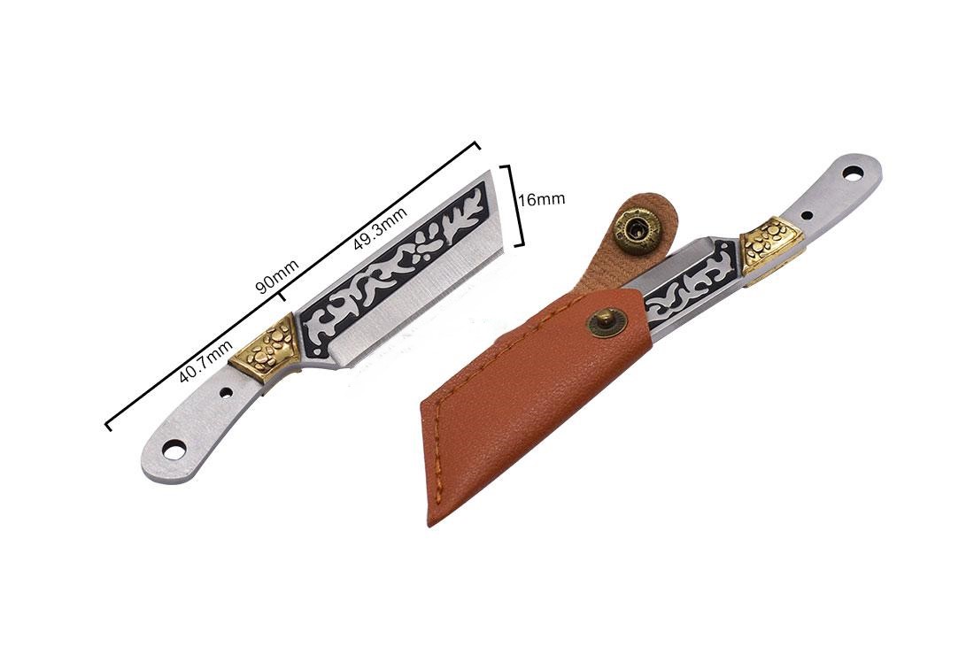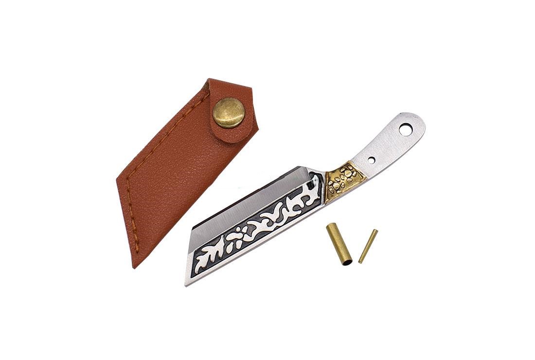 Mini kniv med præget udsmykning, front holk og nitter.