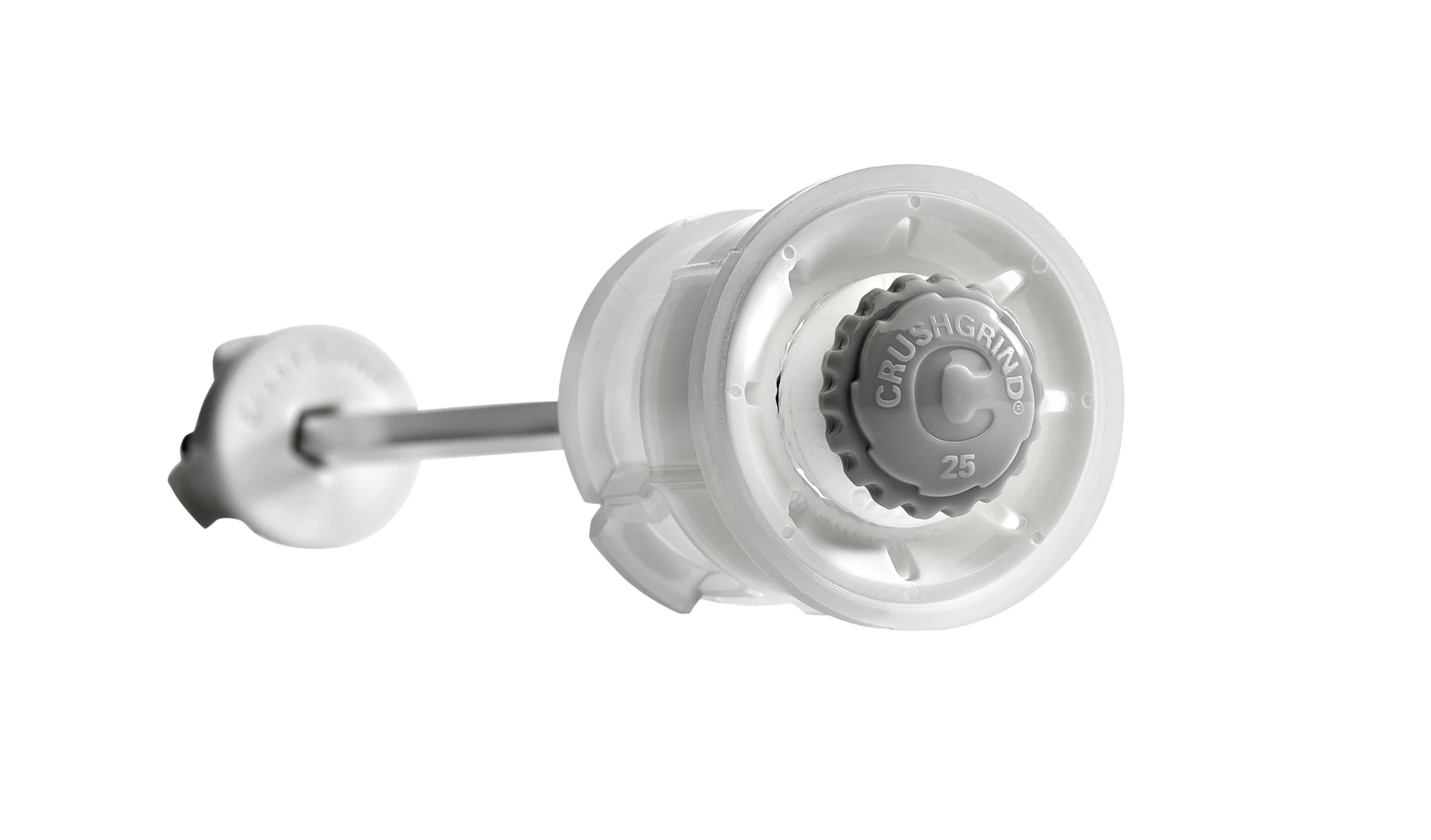 CrushGrind salt og peber indsats, kværnen er bygget op på en plastkappe, omkring en keramisk kværn, kværnemekanismen er af meget høj kvalitet, og levnedsmiddelneutral.