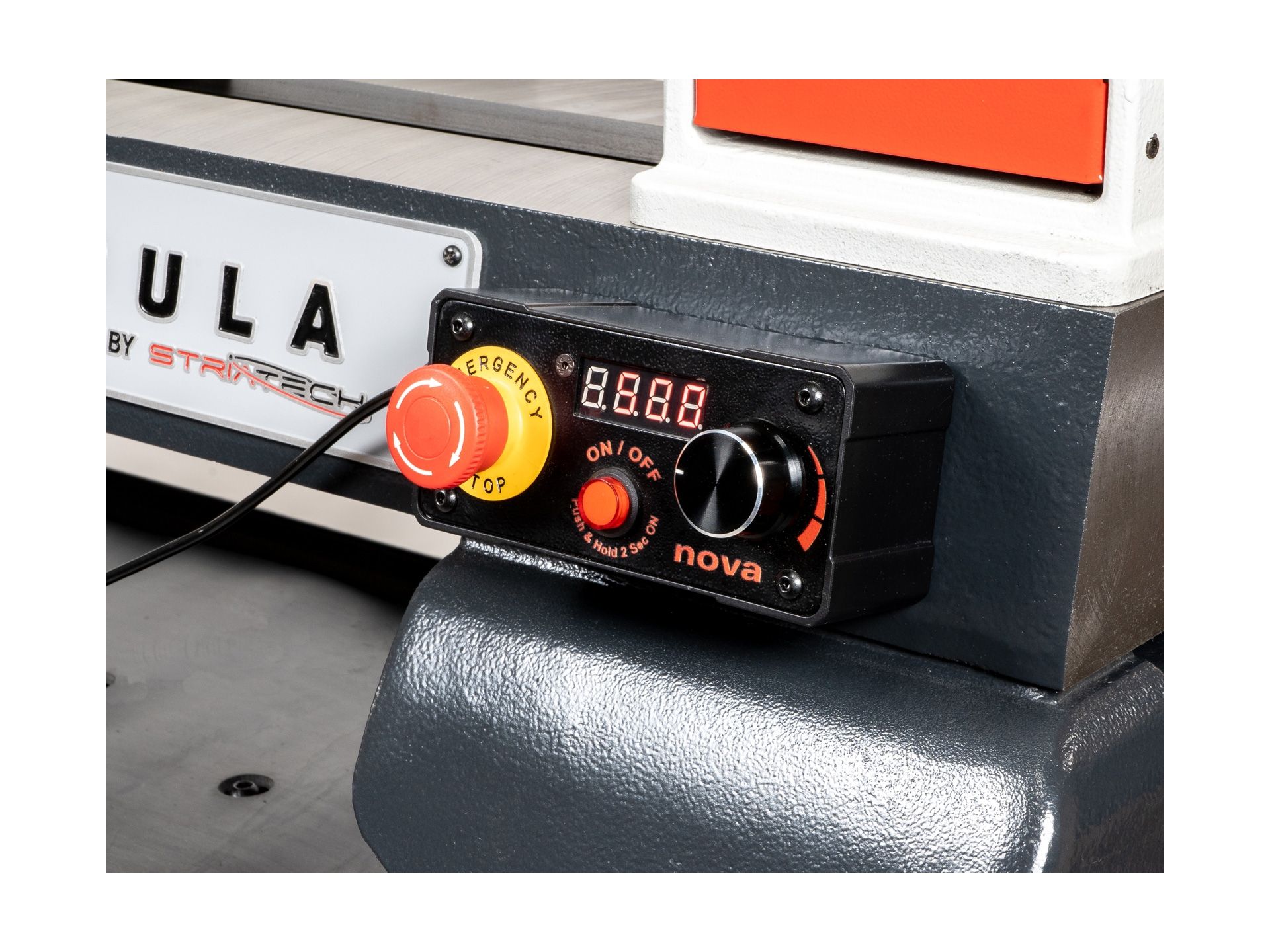 NOVA drejebænken med 230 mm centerhøjde og 2,3 HK motor fra TEKNATOOL med mange praktiske detaljer og det gennemprøvede DVR-drevkoncept.